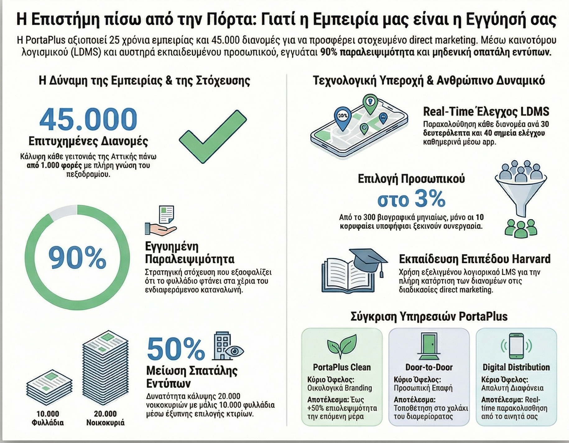 Η εμπειρία των 45.000 διανομών μας και η αυστηρή επιλογή του προσωπικού μας είναι η δική σας εγγύηση ότι το μήνυμά σας θα φτάσει στα σωστά χέρια, τη σωστή στιγμή, φέρνοντας το μέγιστο δυνατό αποτέλεσμα στο ταμείο σας.